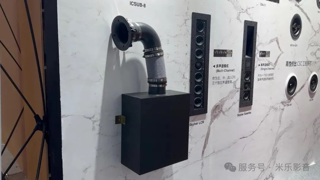 这次米乐影音带来了TDG Audio的完整嵌入式产品体系,覆盖In-Wall和In-Ceiling两种安装方式,从LCR主声道、环绕声道到Atmos顶部声道都有对应型号。在结构设计上,产品对于不同使用场景有很高的定制性,而且专门减少墙体环境对声音的影响,通过不同材质的单元,和可调高音单元改善指向性控制,给客户带来不同的搭配和组合体验。