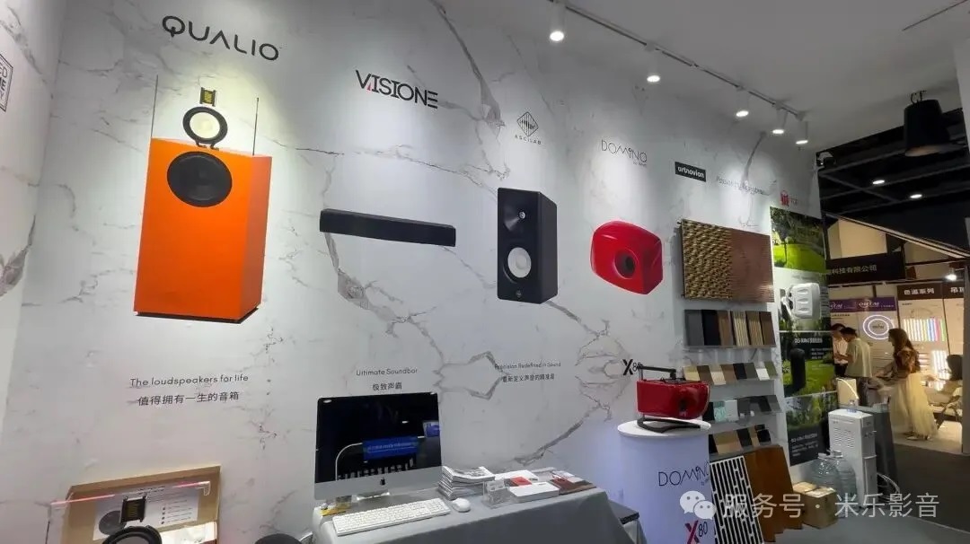 音箱部分还包括韩国AsciLab以及波兰Qualio Audio的产品,主要面向两声道Hi-Fi系统,用于补充音乐欣赏的场景。同时也展示了Visione Soundbar这类一体化产品,用更简化的方式完成电视声音升级,适合不进行复杂施工的用户。