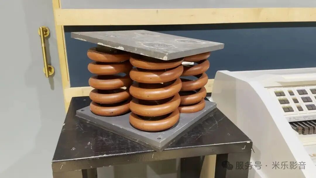 这个录音棚总共有15个房间,每个房间都是独立悬挂在弹簧系统上的“掩体”,实现高度隔音。理论上想要完全隔离不可能,但他们尽量做到了接近100%,每个八度都有特定的隔离能力。如果想捕捉到低至20赫兹的声音,需要从三个八度以下开始设计,这样隔离能做到低至3赫兹。