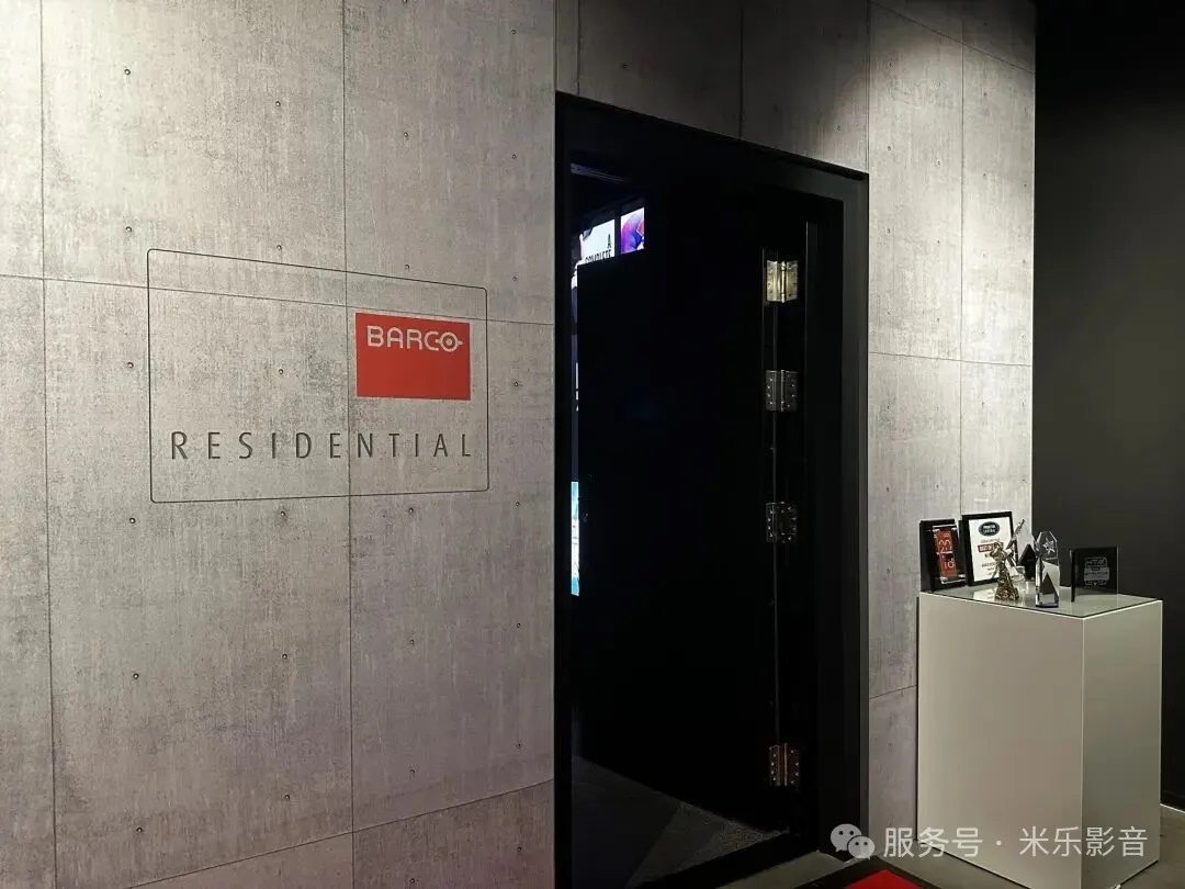 离开商用电影院演示厅,我们随后被带到另外一个小房间,这里就是Barco Residential的部分,这是一个由英国设计团队打造的家用顶级家庭影院房间。