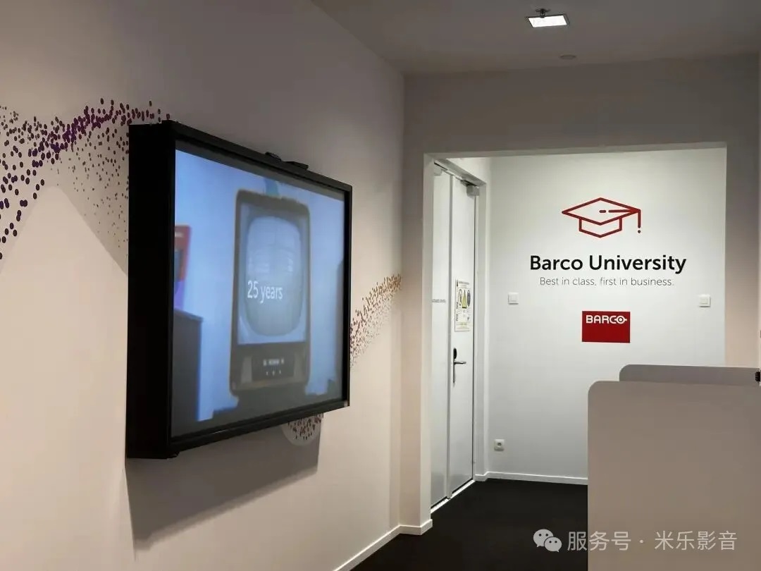 离开这两个影院演示房间后,我们就进入Barco的商用展示区域,这里有一个Barco University,特别用来培训来自全球各地的Barco产品使用者和销售团队。