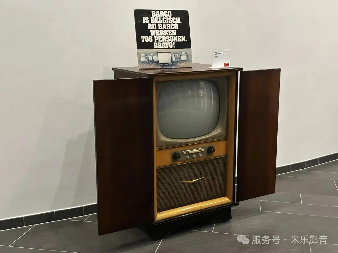 Barco最早成立于1934年,名字来自 Belgian American Radio Corporation,那时候主要做收音机。公司真正进入影像技术,是从战后开始转向显示设备、监视器,到 70、80 年代逐步发展出投影、医疗影像和控制室技术。因此,在Barco总部这里,我们还能找到相当多当年的影音产品。