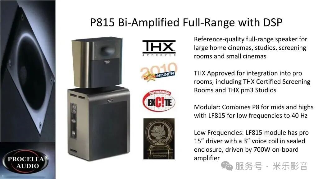翌年,Procella Audio式成立,定位在“Cinema-Grade(影院标准)”扬声器领域,专注为家庭影院与专业放映厅提供高保真系统。