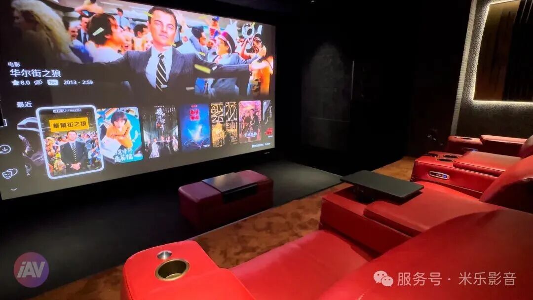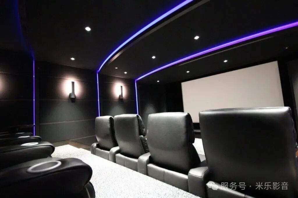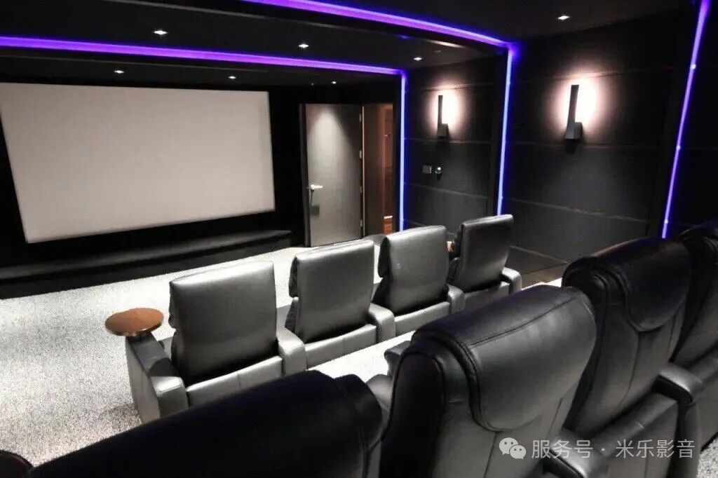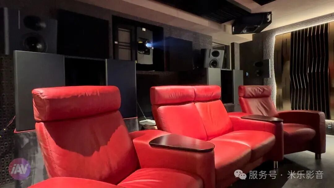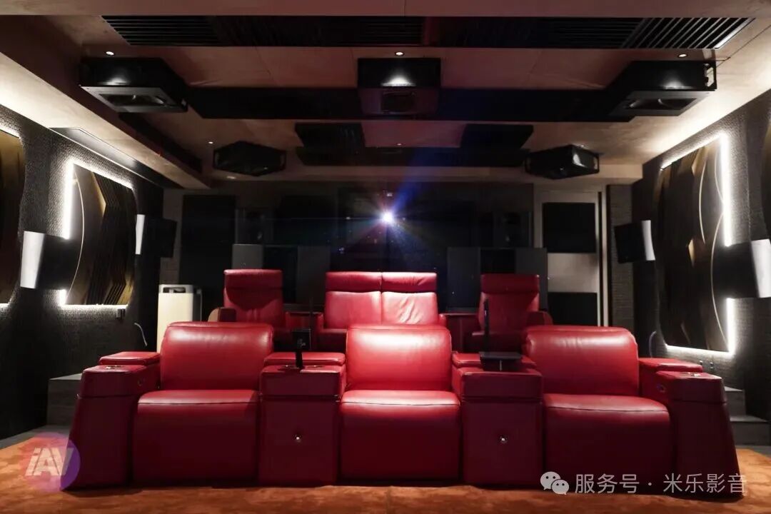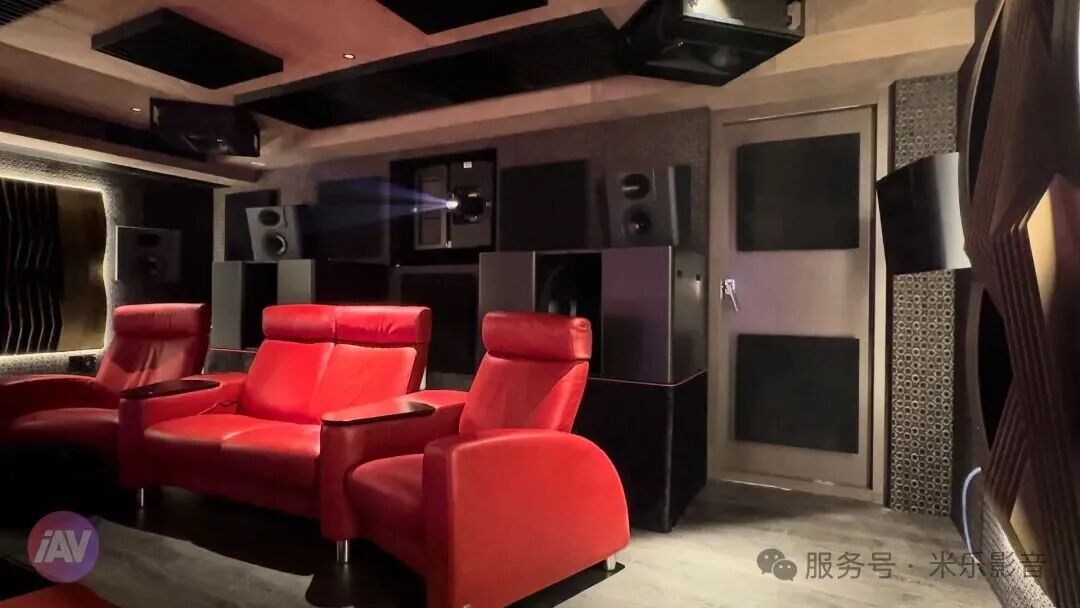 该影院是国内首批采用WaveForming 技术的私人影院之一。通过6只V21 超低音与Trinnov系统的三维声场校准(包括 Tom Garrett参与的专业调试),实现了平面低频波前(planar wave-front)输出,有效消除驻波并提升低频覆盖一致性。该项目位于浙江温州,由米乐影音(Miro Sound & Vision)负责设计、承装与调试,影院建于多层地下室结构中,层高约5.8米,最高处达7.6米。