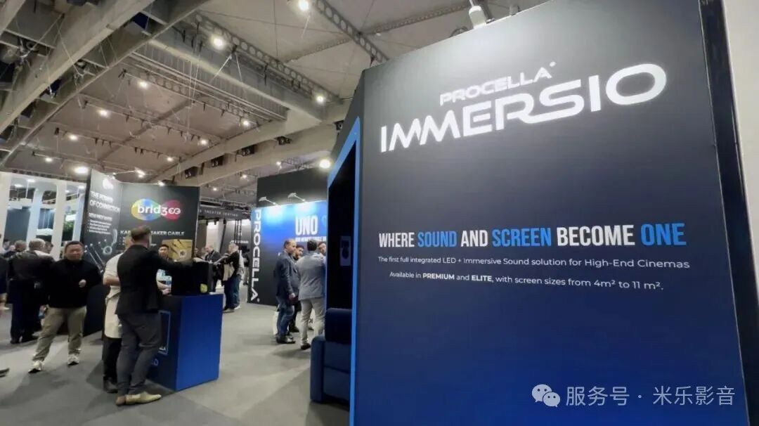 今年是Procella Audio同时带来了一个面向未来家庭影院娱乐的重要系统概念:IMMERSIO 平台。这个方案不是单纯的扬声器发布,而是把声音与显示做成一个整体解决方案,专门解决LED显示时代家庭影院在声音/画面协同上的核心问题——非透声LED屏幕无法将声音从后面投射出来。ISE官方资料显示,IMMERSIO将电影级音频系统与先进的LED显示技术整合在一起,形成一个集音视频于一体的AV平台,意图为高端住宅影音系统和家庭影院娱乐提供一个更完整的系统框架,而不是单独产品堆叠。
