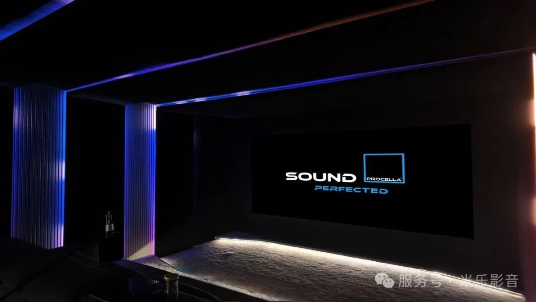 在前舞台区域,采用障板墙系统来集成扬声器和低音炮。这种结构改善了前舞台的频率控制,并提供了简洁美观的影院外观。