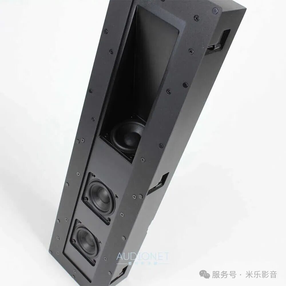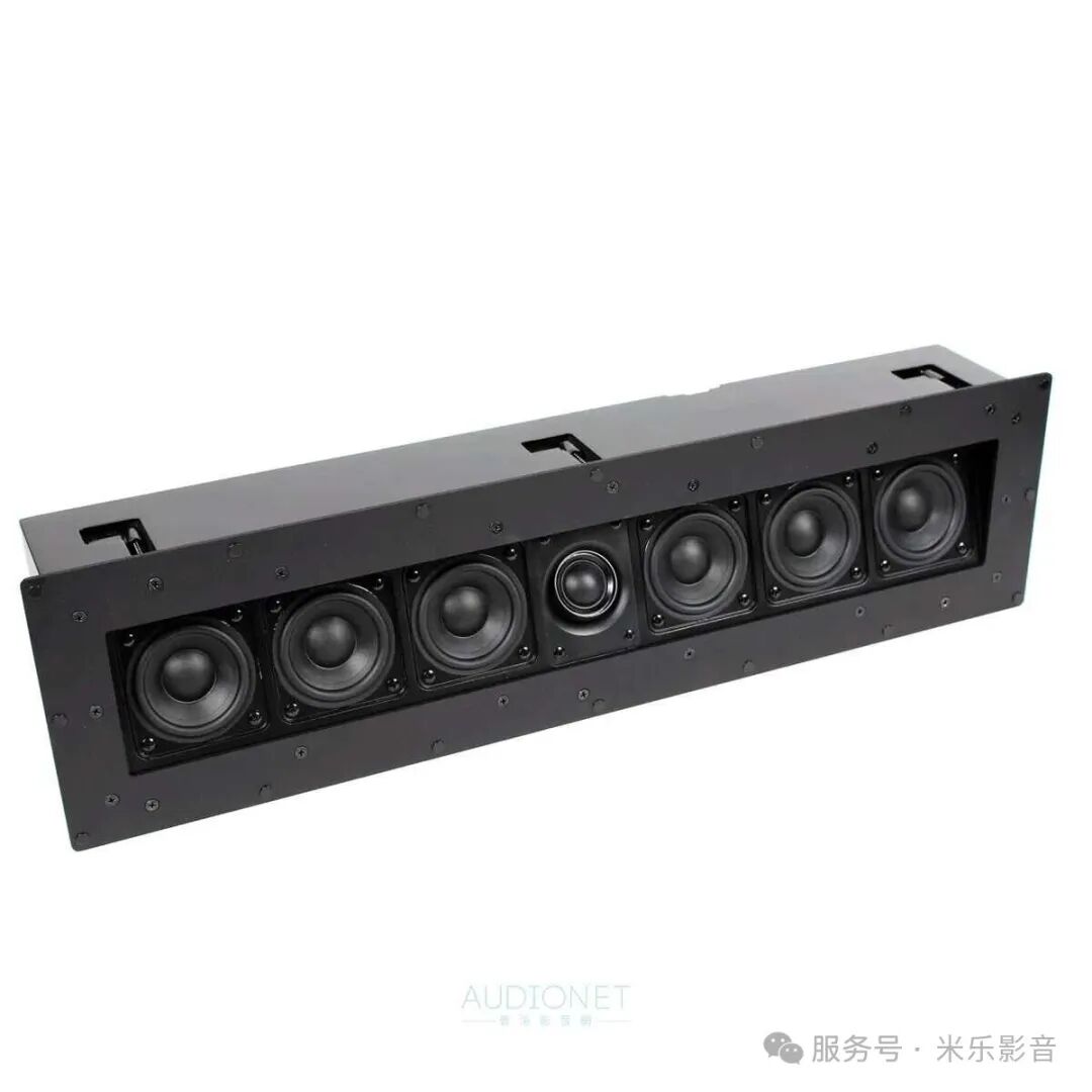 TDG Audio Skybar嵌入式喇叭均采用长条形结构,体积小但结构扎实,喇叭障板采用精密冲压的钢板制成,搭配MDF喇叭箱体,能大幅降低喇叭共振音染。Skybar系列中有LCR和Satellite两款产品,前者顾名思义可以身兼左、中、右三声道喇叭,后者则是搭配LCR的环绕声道。仅需三支喇叭搭配,最多可满足7声道的影院配置。TDG Audio Skybar是如何办到的?必须从喇叭的单元配置说起。