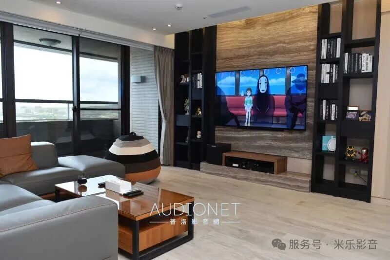 本次受访的业主侯先生,位于台中市西屯区的新居宽敞时尚。他与家人爱好影音娱乐,希望构建家庭影院,但前提是不破坏现有的精致装潢与系统柜。因此,他的核心需求是:将音箱全部隐藏。