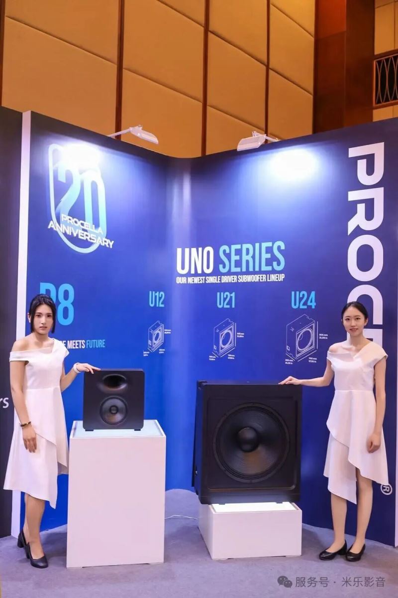 此次展示中,这次重点呈现了P8主箱与UNO系列U21超低音两款核心产品,以实物产品直观呈现影院级音箱的结构细节与体积规格——其中P8主箱作为品牌的经典产品,采用两分频两单元设计,搭配定制的椭圆恒定指向性波导,能够实现宽广的声音扩散范围,兼顾音质与声场表现,是杜比全景声等沉浸式音频系统的理想选择;UNO系列超低音则采用了全新紧凑箱体设计,同时不失有优秀的低频性能,让用户清晰感知影院级音箱与普通家用音箱的本质区别,也彰显了Procella Audio在专业影院音箱领域的深厚实力。