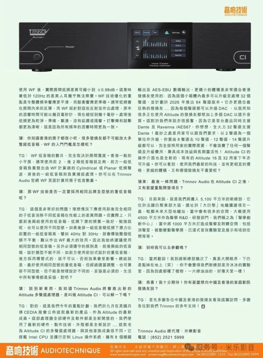 蒲东:说到新东西,我知道Trimov Audio将会推出新的Altitude多声道处理器,是叫做 Altitude CI,可以了解一下吗?