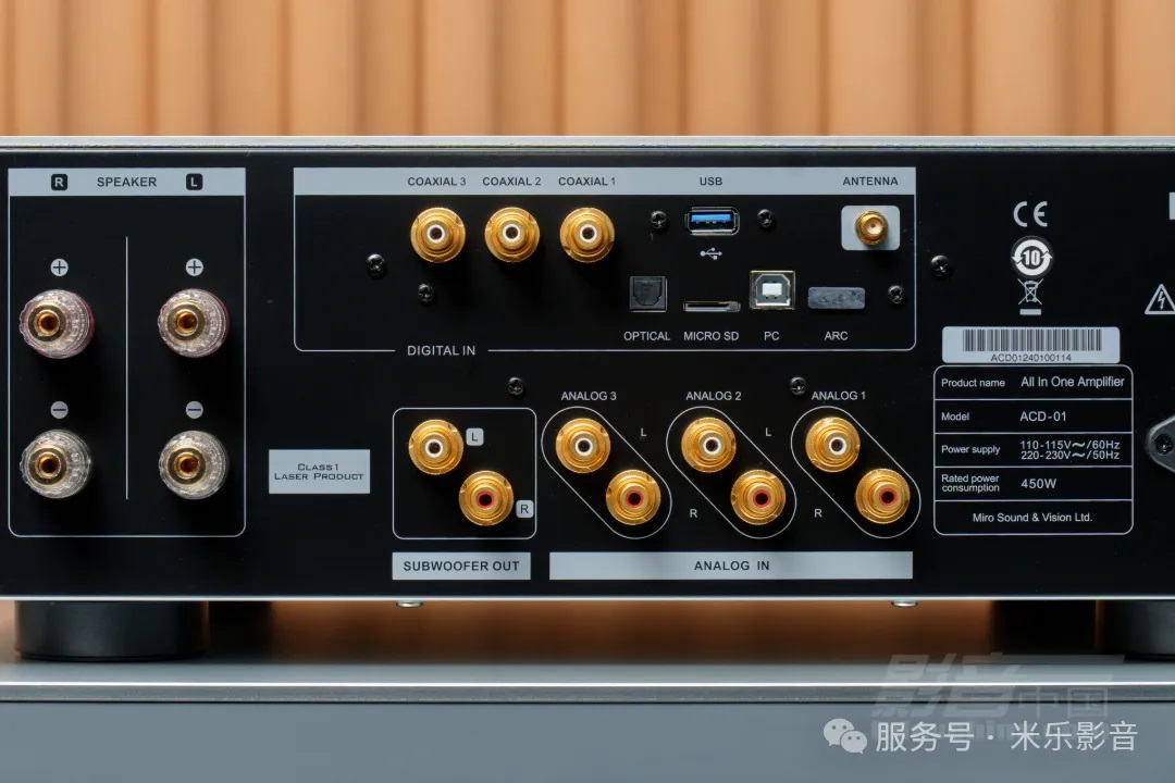 ACD-01是一款可玩性很高的机型。机身提供三组RCA输入接口,足以应对多种模拟讯源的接入需求,无论是数播、黑胶系统还是其他前端设备,都能够方便地整合进同一系统之中。此外,ACD-01还预留了左右声道独立的低音炮输出通道,使用户可以轻松构建2.2系统。
