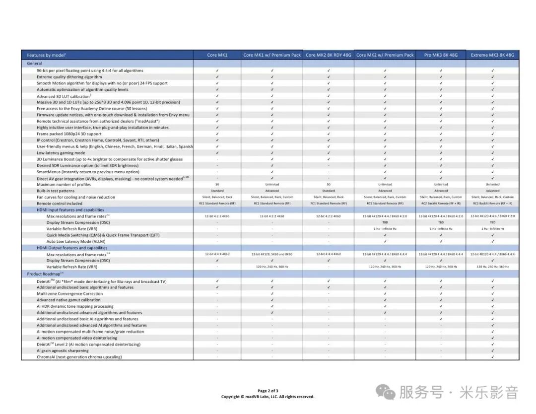“我们的使命是突破视频处理的界限,为客户提供终极画质,同时确保其用户友好和直观易用,”madVR Labs联合创始人兼首席执行官Richard Litofsky表示:“随着Envy Core MK2和MK3系列的推出,我们很高兴迎来新一代的Envy。这些产品不仅引入了行业首创的功能,如完整的48 Gbps HDMI 2.1输入和输出,还解锁了高级游戏功能,包括VRR和显著降低的延迟——这都是我们的客户一直所要求的。无论是用于专用影院还是多功能房间,Envy持续重新定义高端视频处理的可能界限。”