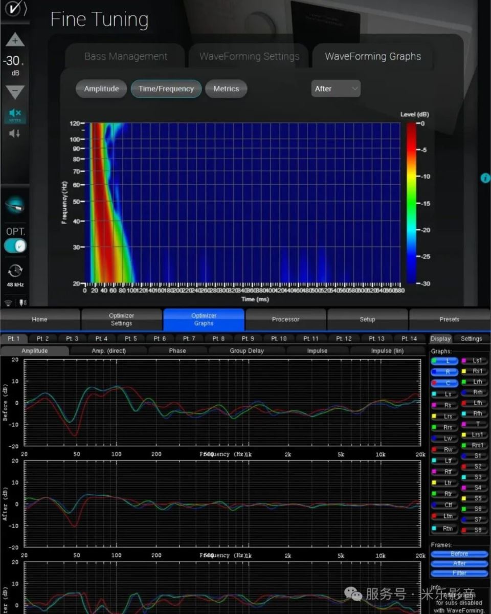 未经校准状态下,所有声道已呈现出参考级的动态表现、水晶般清晰和精准的控制力。每台功放都加载了DSP预设调校,以实现无缝集成。