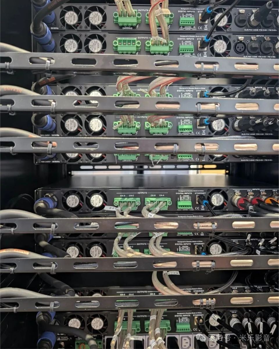 6台DA03-DSP功放精准调控所有环绕与天空声道,为沉浸式音轨提供精确和高动态冗余的输出。