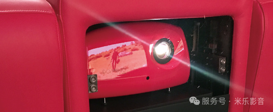 就如米乐于视听展展示的一款二人座椅,就按米乐的规定,把SIM2 X80的投影机,藏于两座椅中间,不少发烧友来到米乐展房,都在找投影机到底藏在那个地方!