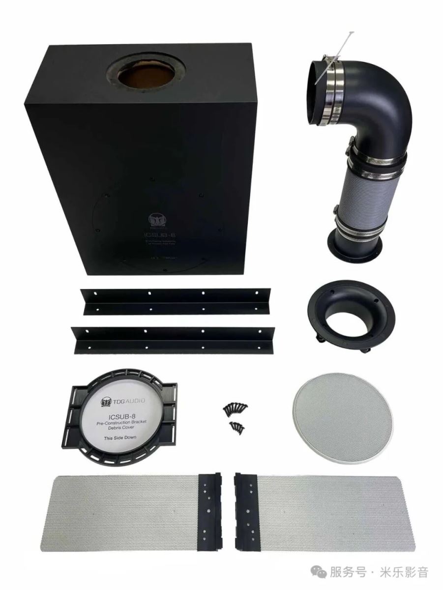 产品随附全套安装所需配件。预装支架可提前固定,待天花板完工后再安装框架与网罩组合。柔性导音管设计,使得箱体与网罩可独立定位,实现最优安装效果。与所有TDG Audio音箱一样,本产品享受终身保修。