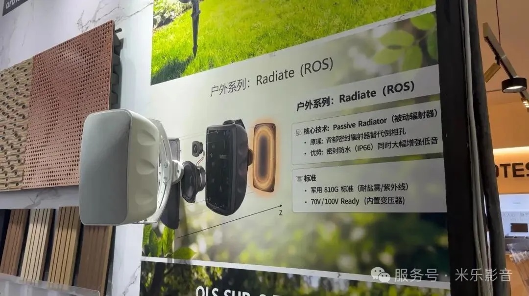 在户外展示区域,TDG同样提供了完整产品线,包括支持IP66防护等级的嵌入式音箱,以及专门在花园中安装的隐藏式音箱。