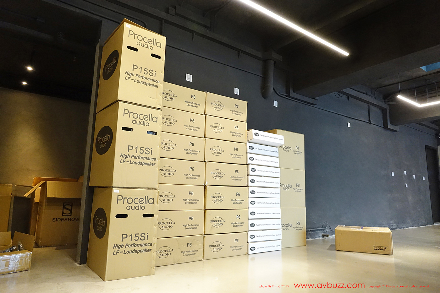 14隻 P6 環繞聲喇叭,整齊擺放在發燒房一角等工作人員來安裝。