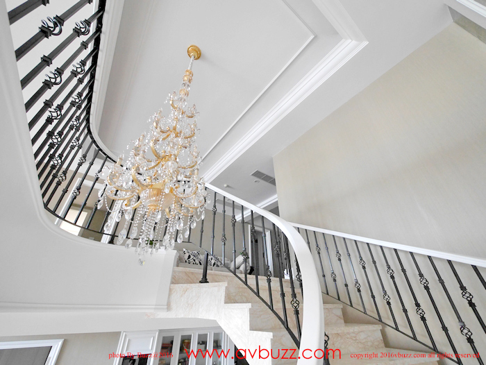 在这距离看88吋弧面电视,刚刚好,楼上是五个房间的位置,主人房一直伸展到按摩池上方,超级巨大的主人房啊。