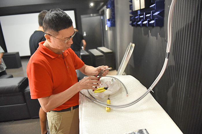 所以開工前,華師傅便為三個低音炮開線頭,方便接上P18去。